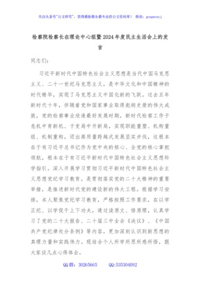 / 检察院检察长在理论中心组暨2024年度民主生活会上的发言