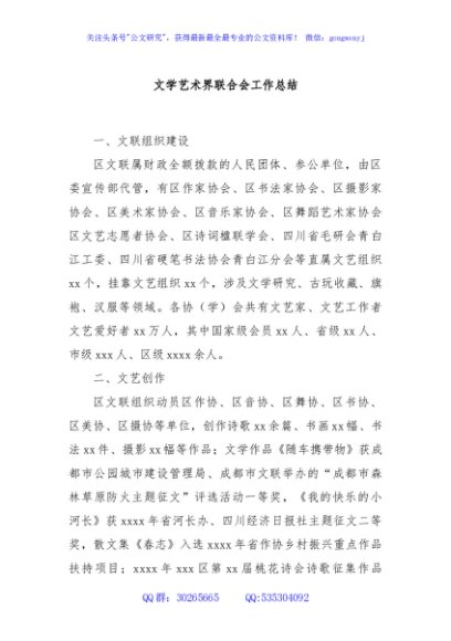 / 文学艺术界联合会工作总结