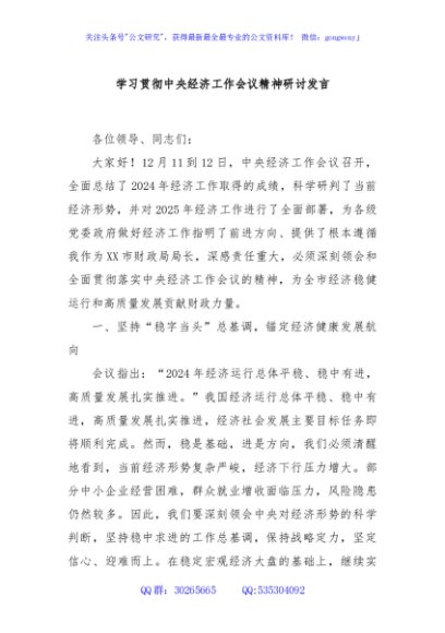 / 学习贯彻中央经济工作会议精神研讨发言