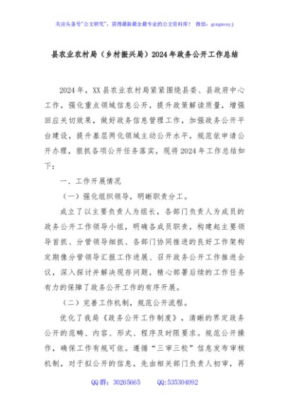 / 县农业农村局(乡村振兴局)2024年政务公开工作总结