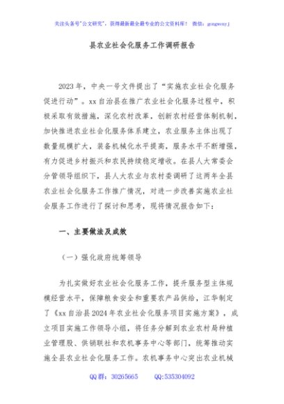 / 县农业社会化服务工作调研报告