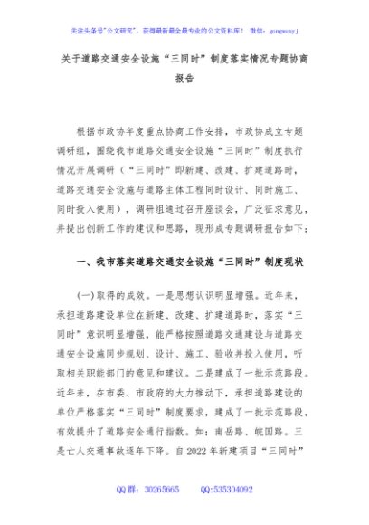 / 关于道路交通安全设施“三同时”制度落实情况专题协商报告