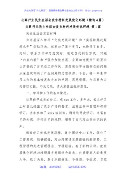 / 公路行业民主生活会发言材料发展优化环境(精选4篇)