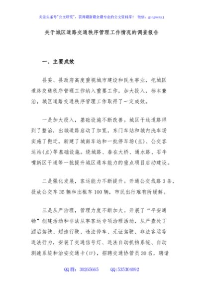 / 关于城区道路交通秩序管理工作情况的调查报告