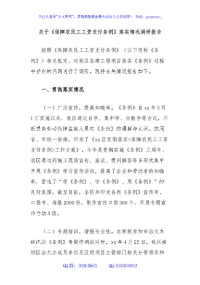 / 关于《保障农民工工资支付条例》落实情况调研报告
