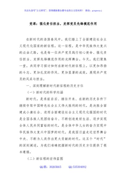 / 党课:强化责任担当,发挥党员先锋模范作用