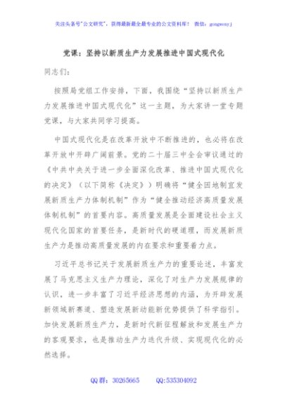 / 党课:坚持以新质生产力发展推进中国式现代化