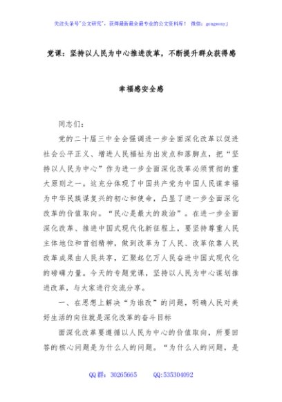 / 党课:坚持以人民为中心推进改革,不断提升群众获得感幸福感安全感