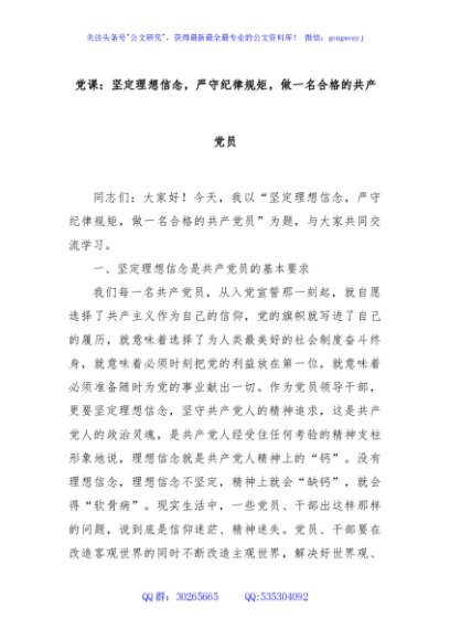 / 党课:坚定理想信念,严守纪律规矩,做一名合格的共产党员