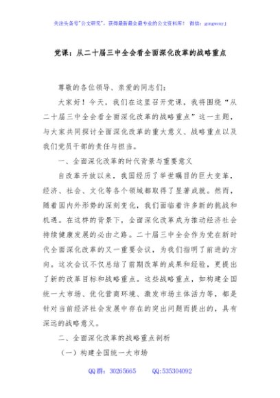 / 党课:从二十届三中全会看全面深化改革的战略重点