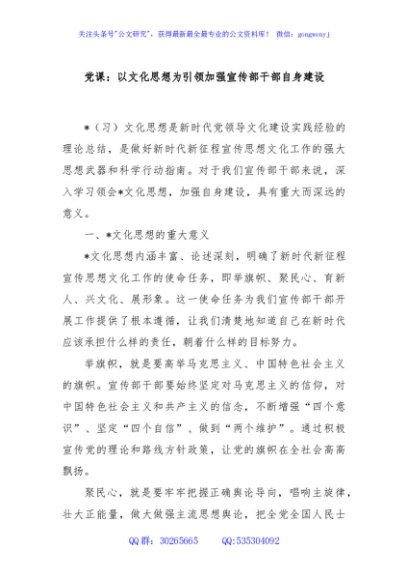 / 党课:以文化思想为引领加强宣传部干部自身建设
