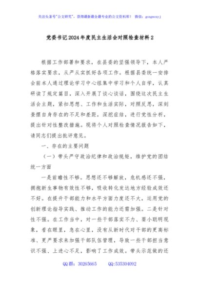 (10篇)县委2025年度民主生活会对照检查材料汇编