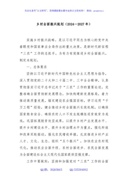/ 乡村全面振兴规划(2024-2027年)