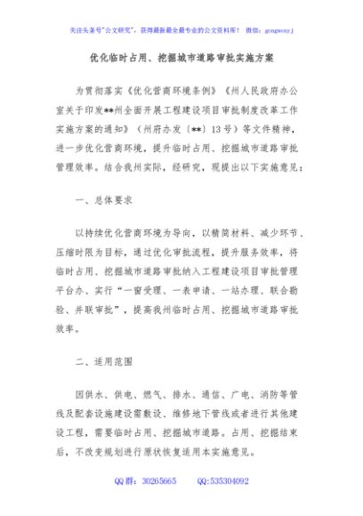 优化临时占用、挖掘城市道路审批实施方案