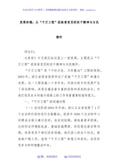 / 党课讲稿:从“千万工程”经验看党员的实干精神与为民情怀