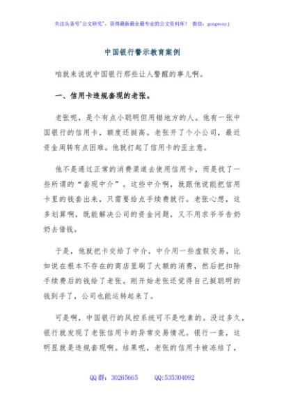 中国银行警示教育案例