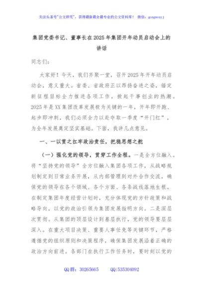 / 集团党委书记、董事长在2025年集团开年动员启动会上的讲话