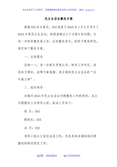 / 民主生活会整改方案