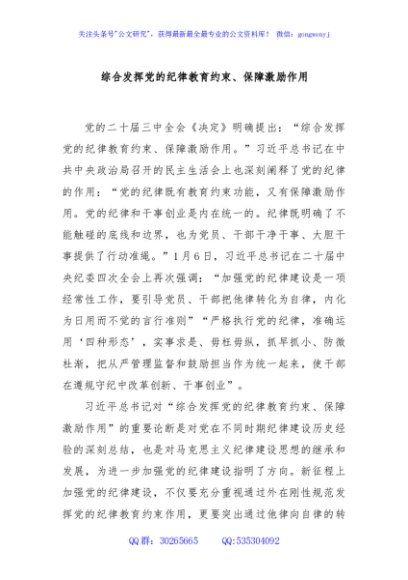 / 综合发挥党的纪律教育约束、保障激励作用