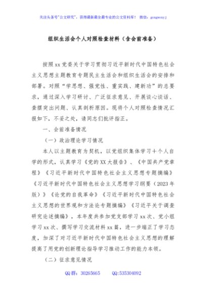 / 组织生活会个人对照检查材料(含会前准备)