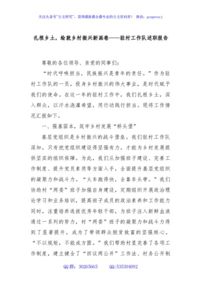 / 扎根乡土,绘就乡村振兴新画卷——驻村工作队述职报告