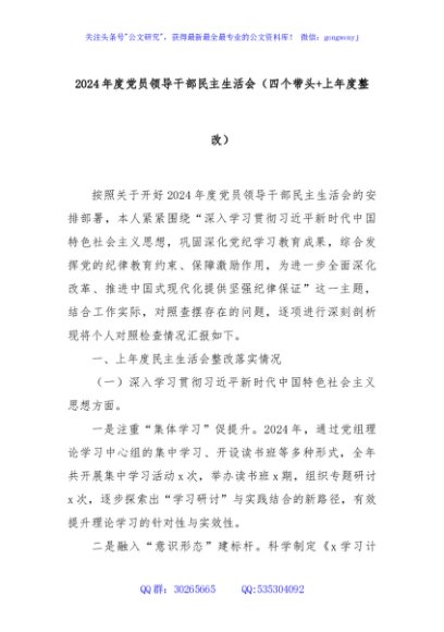 / 2024年度党员领导干部民主生活会(四个带头+上年度整改)