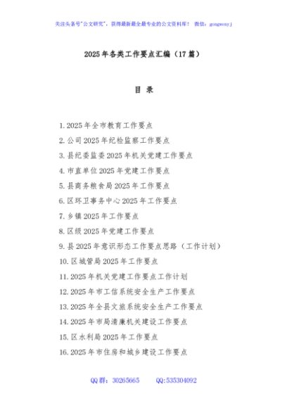 (17篇)2025年各类工作要点汇编