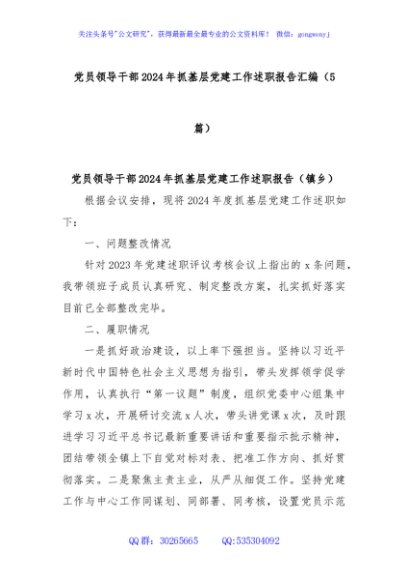 / (5篇)党员领导干部2024年抓基层党建工作述职报告汇编