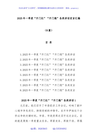 / (8篇)2025年一季度“开门红”“开门稳”各类讲话发言汇编