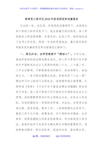 / 街道党工委书记2024年度述职述责述廉报告
