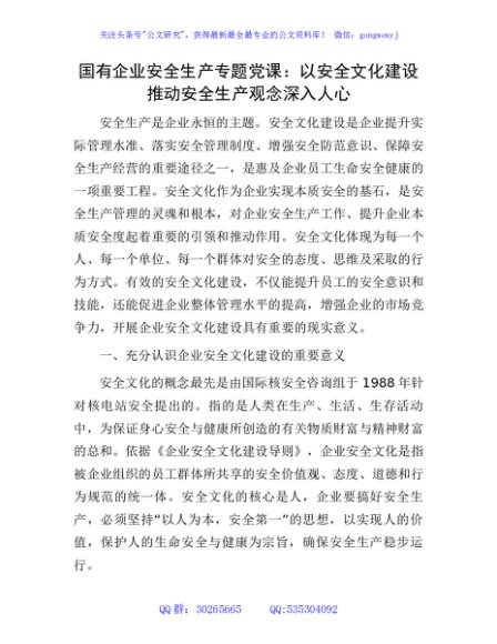 / 国有企业安全生产专题党课:以安全文化建设推动安全生产观念深入人心