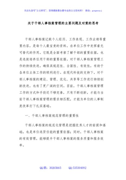 / 关于干部人事档案管理的主要问题及对策的思考