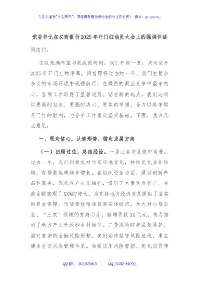 / 党委书记在农商银行2025年开门红动员大会上的强调讲话