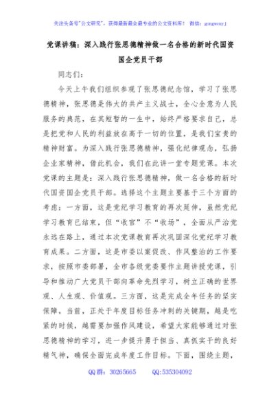 / 党课讲稿:深入践行张思德精神做一名合格的新时代国资国企党员干部
