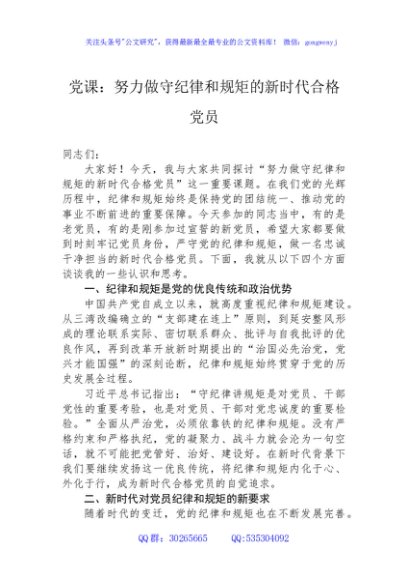 / 党课:努力做守纪律和规矩的新时代合格党员