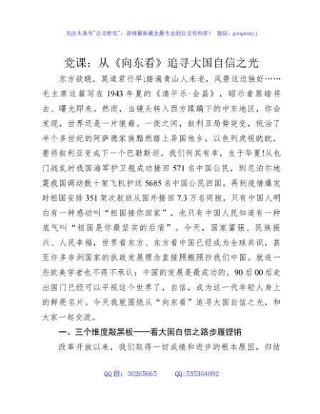 / 党课:从《向东看》追寻大国自信之光