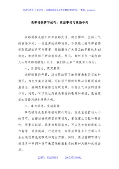 / 表彰通报撰写技巧:突出事迹与激励导向