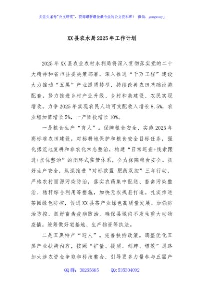 / XX县农水局2025年工作计划