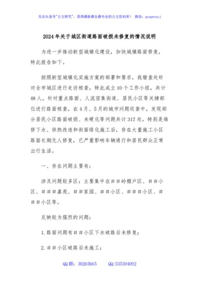 / 2024年关于城区街道路面破损未修复的情况说明
