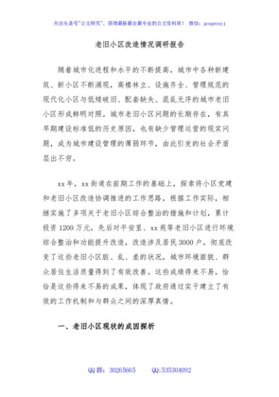 / 老旧小区改造情况调研报告