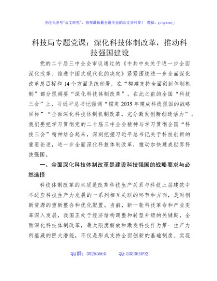 / 科技局专题党课:深化科技体制改革,推动科技强国建设