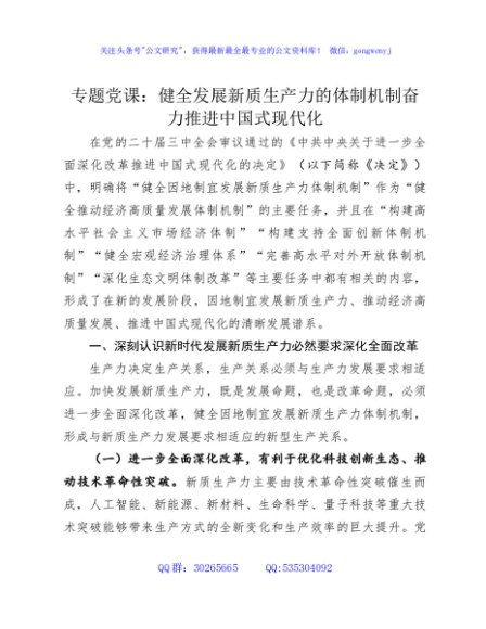 / 专题党课:健全发展新质生产力的体制机制奋力推进中国式现代化