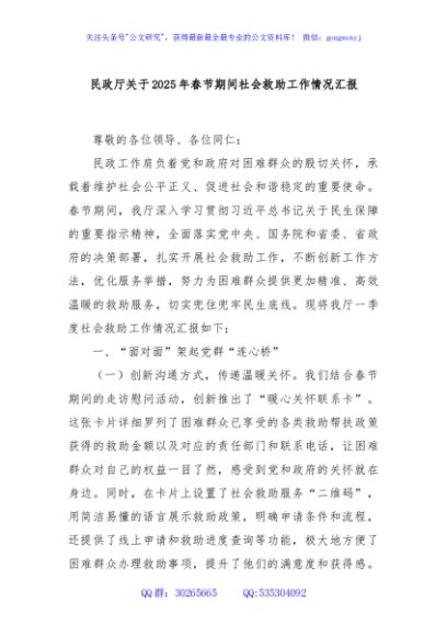 / 民政厅关于2025年春节期间社会救助工作情况汇报