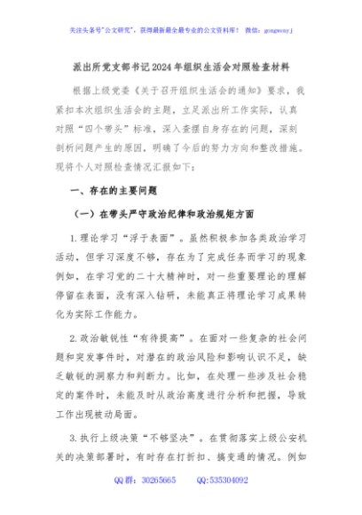 / 派出所党支部书记2024年组织生活会对照检查材料