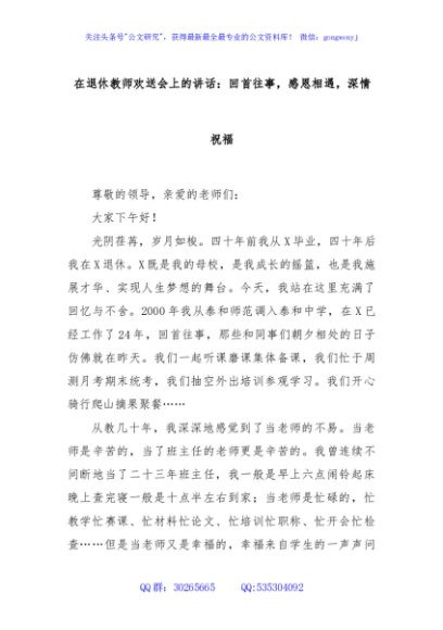 / 在退休教师欢送会上的讲话:回首往事,感恩相遇,深情祝福