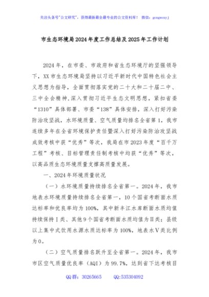 / 市生态环境局2024年度工作总结及2025年工作计划
