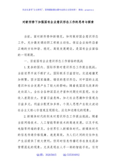 / 对新形势下加强国有企业意识形态工作的思考与探索