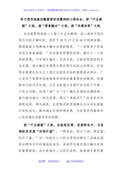 / 学习领导视察安徽重要讲话精神的心得体会:扬“产业赋能”之帆、扬“要素融合”之帆、扬“共建共享”之帆