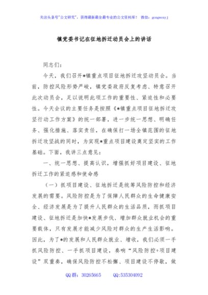 / 镇党委书记在征地拆迁动员会上的讲话