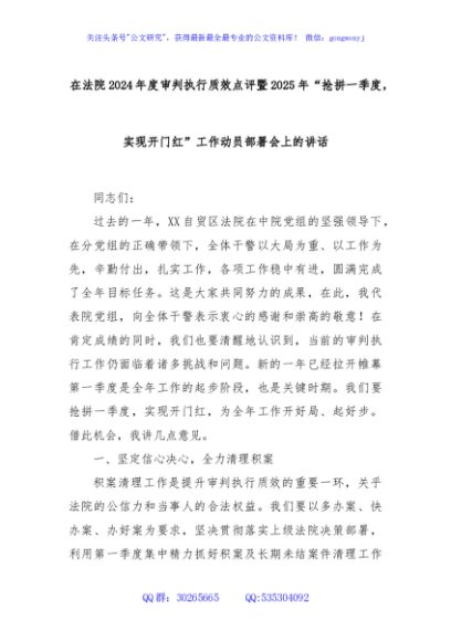 / 在法院2024年度审判执行质效点评暨2025年“抢拼一季度,实现开门红”工作动员部署会上的讲话